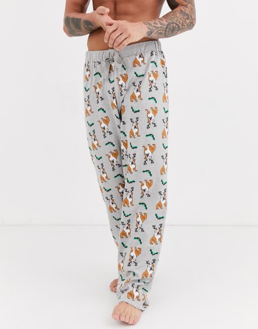 Bulldog clearance pajama set, Loungeable christmas bulldog print t shirt and trousers pyjama set clearance