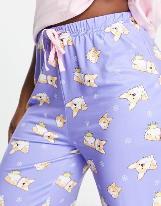 Women s Corgi Dog Notch Collar Cotton Blend Pant Pajama Set