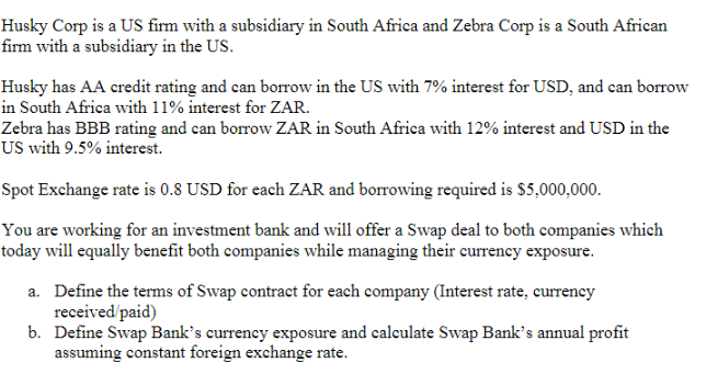 Solved Husky Corp is a US firm with a subsidiary in South Chegg