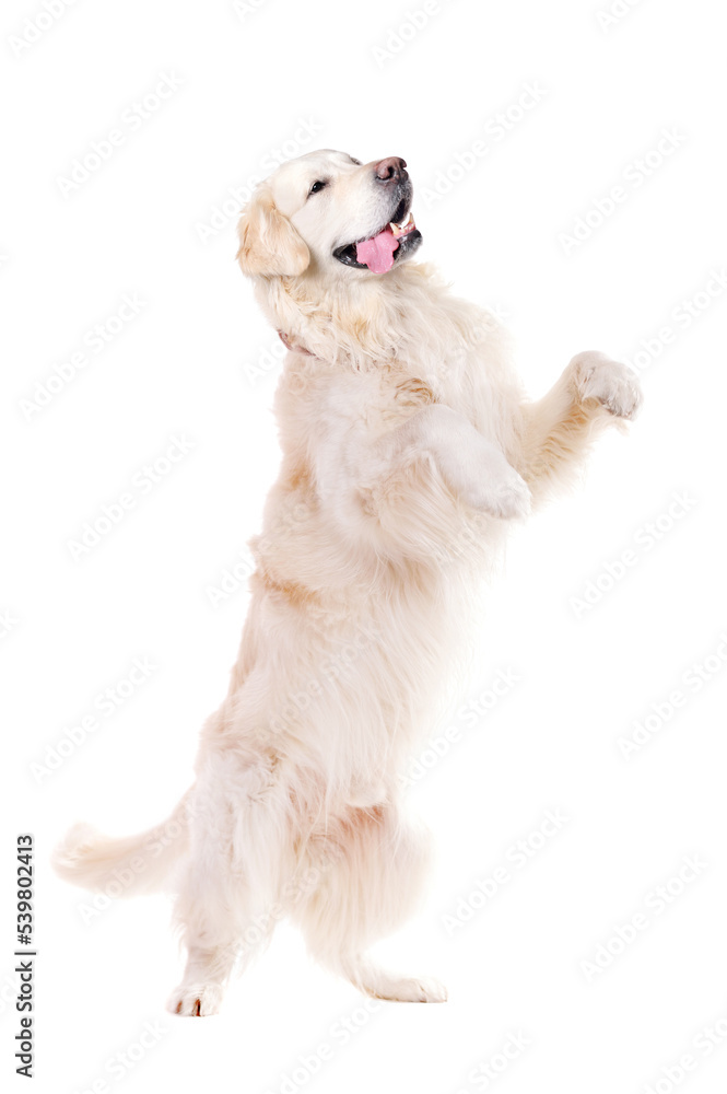 Dancing clearance golden retriever, Two smiling golden retriever puppies dancing in a spring flower clearance