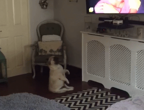 Playful dog can t stop dancing to Wham hit when it appears on TV