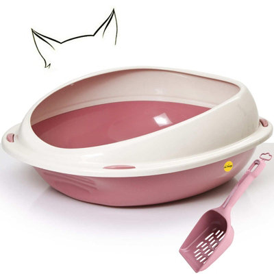 Pink clearance litter tray, CAT CENTRE Jumbo Oval Open Litter Tray With Rim Litter Scoop clearance