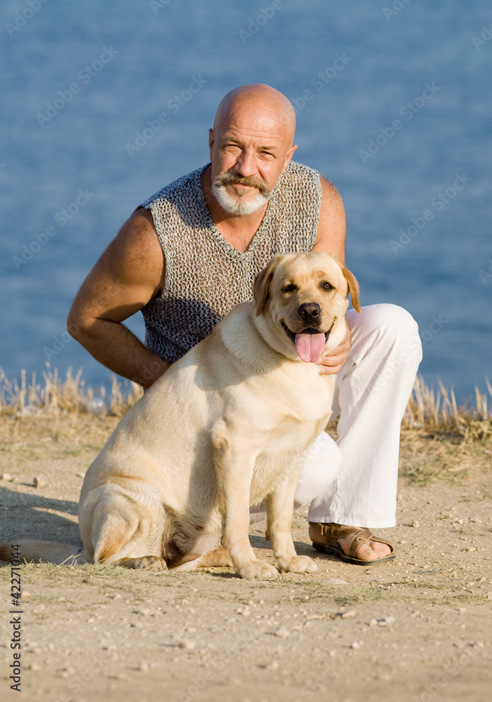 Middle aged Man Labrador Female Dog On Stock Photo 67894510