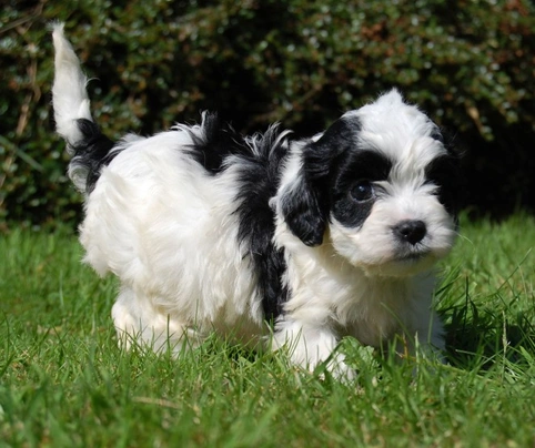 Dog Playful black and white Cavapoo puppy photo WP43078