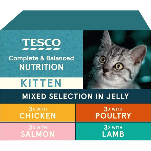 Tesco clearance kitten food, Tesco Cuts In Jelly Fish Selection Cat Food Pouches 12 X100g clearance