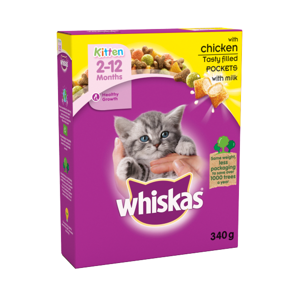 Whiskers clearance cat biscuits, Whiskas Kitten Complete Dry Cat Food Biscuits Chicken 340g clearance