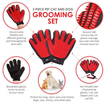 Diy dog shedding clearance brush, PETLICITY Pet Grooming Glove Gentle De shedding Brush with a Dog clearance