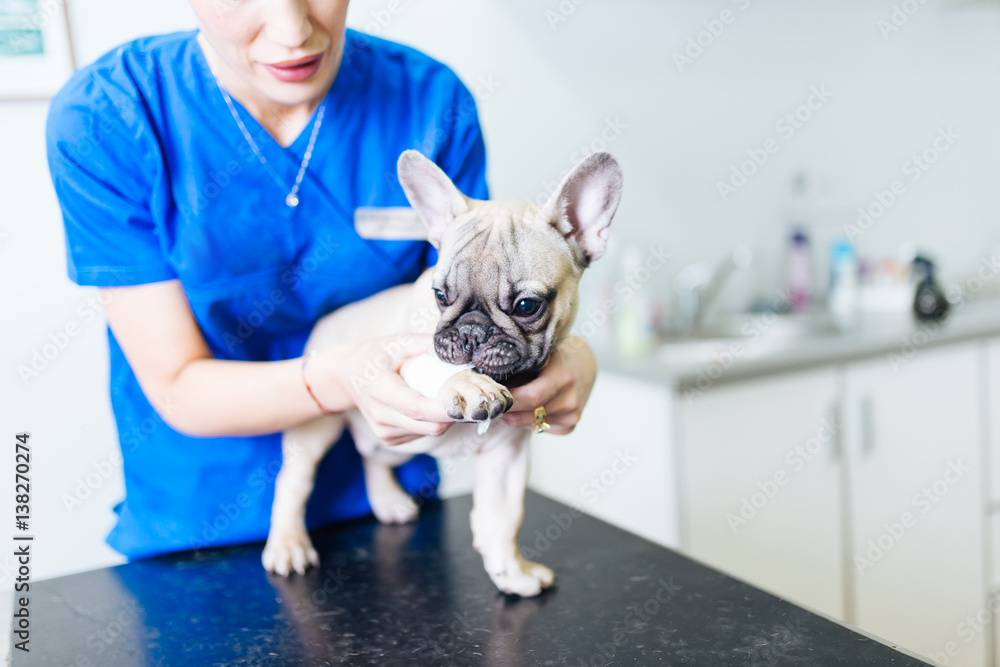 French bulldog puppy at veterinary. Stock Photo Adobe Stock