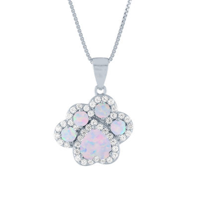 FINE JEWELRY Paw Print Womens Lab Created White Opal Sterling