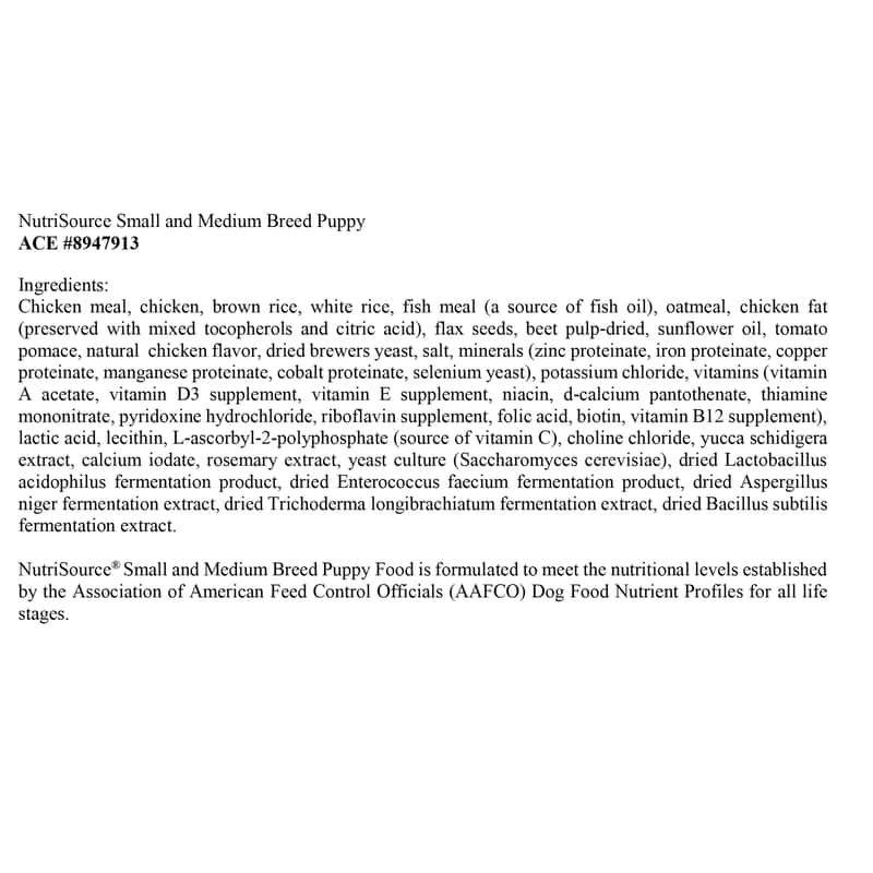 Nutrisource small breed puppy food clearance feeding chart, NutriSource Puppy Chicken Meal and Rice Dry Dog Food 15 lb Ace clearance