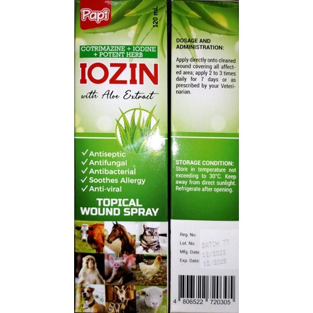 Iozin clearance wound spray, PAPI IOZIN SPRAY WITH ALOE VERA EXTRACT PET TOPICAL WOUND SPRAY clearance