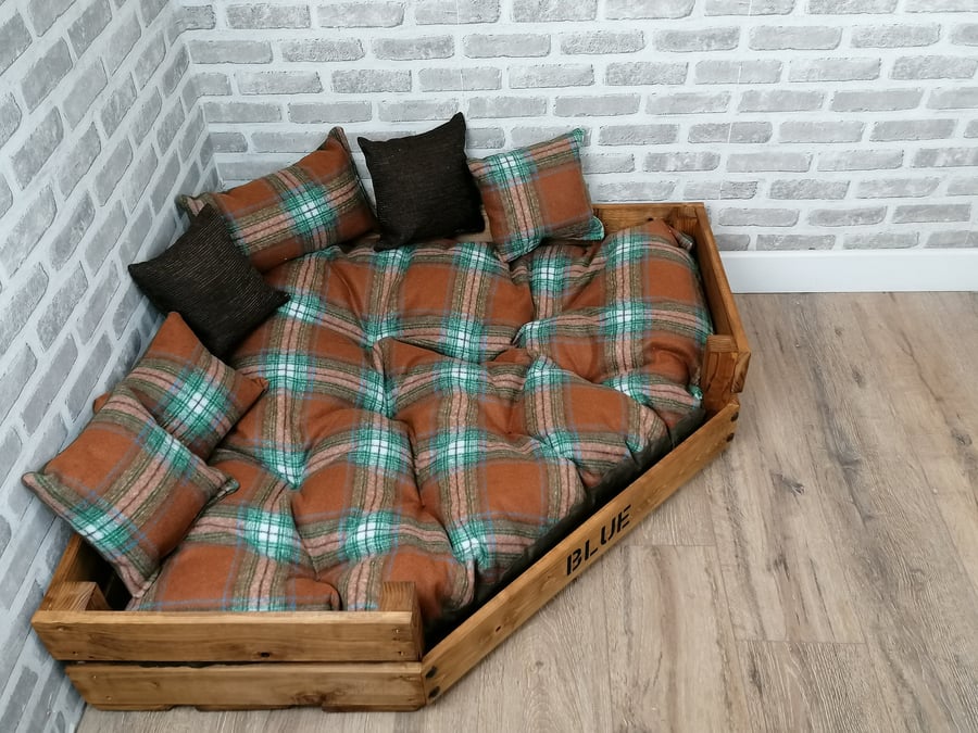 XL Wooden Corner Dog Bed in Brown Cord With Matching Cushions Etsy