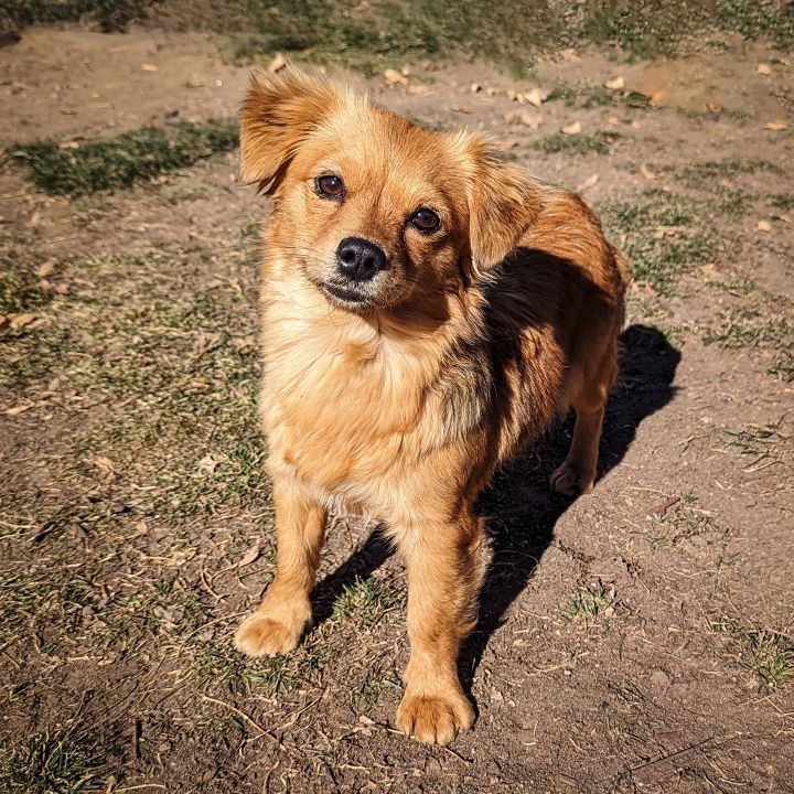 a cute mutt who is half long haired dachshund and half Stable