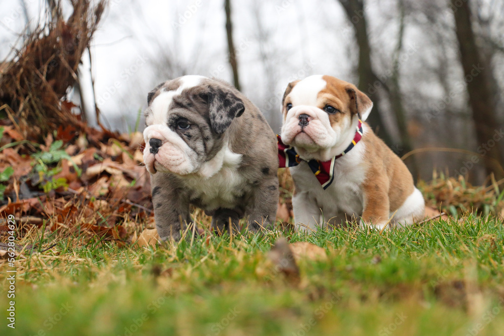 Adorable best friend bulldog puppies who are so wrinkly sitting