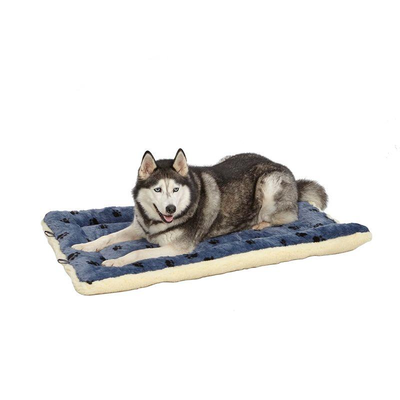 MidWest Quiet Time Fleece Reversible Dog Crate Mat Blue Paw Print