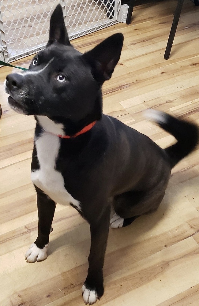 Premium Photo Beautiful black and white akita mutt dog mixed and