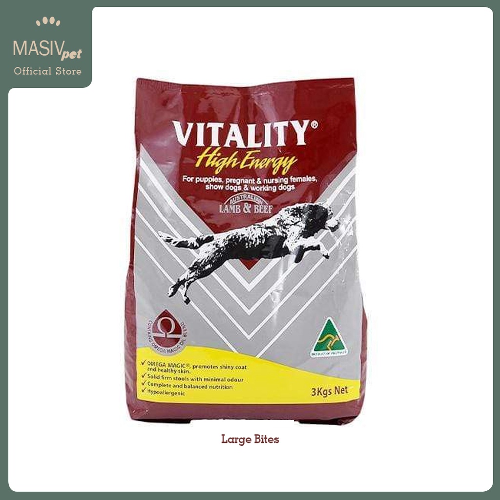 Vitality High Energy Dog Dry Food 3kg Large Bites Original Packaging Canine Kibbles Pellets