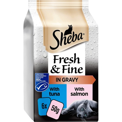 Sheba Fresh Fine Salmon Tuna in Gravy Wet Cat Food Pouches