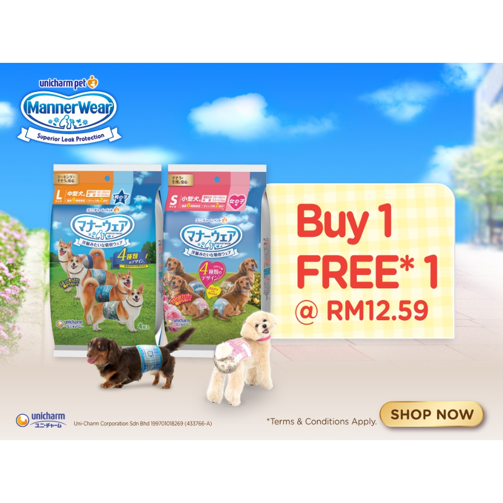 Unicharm clearance dog food, BUY 1 FREE 1 Manner Wear Female Dog Diaper 4pcs per pack clearance