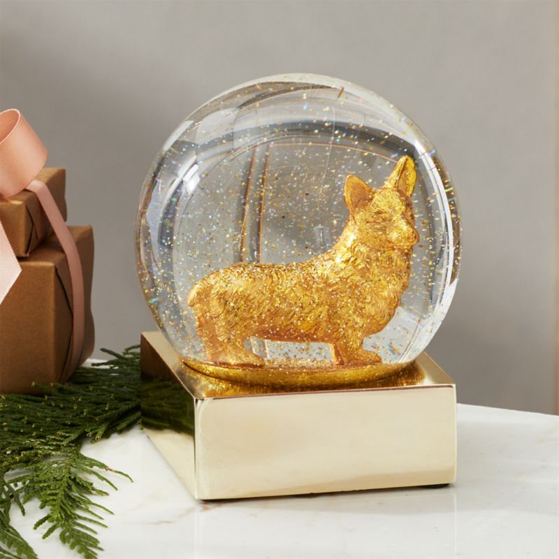 CB2 Holiday Gift Guide 2018 Corgi Gold Snow Globe