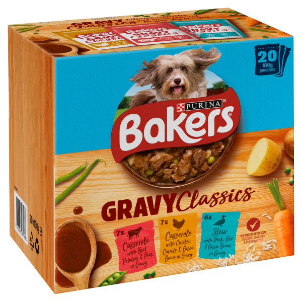 BAKERS Gravy Classics Beef Chicken Duck Wet Dog Food 20x100g