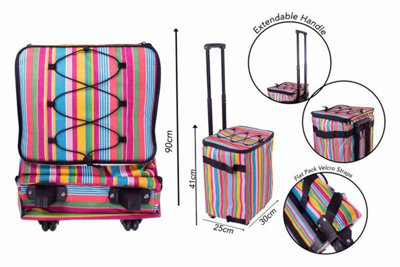 Pull Along Picnic Cool Bag Festival Trolley Portable Stripy Food