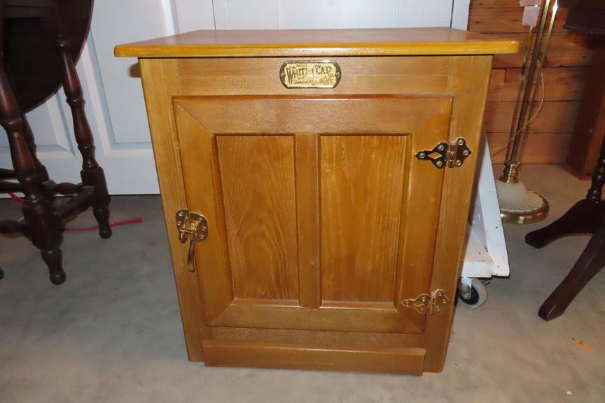 White clad ice clearance chest, Antique Simmons Hardware Co White Clad Oak Wood Ice Box Chest clearance