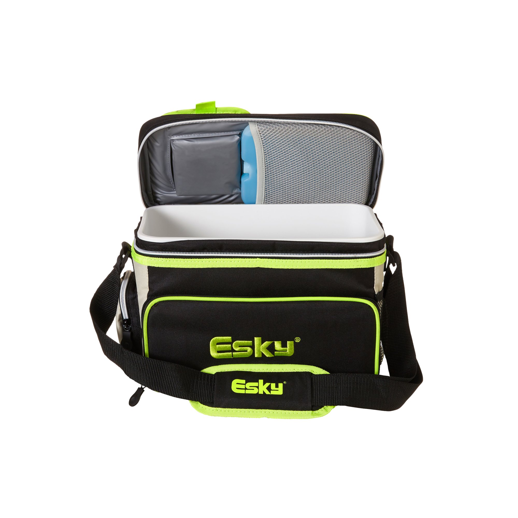 Esky 16 Can Hybrid Cooler with Ice Brick Black White Green