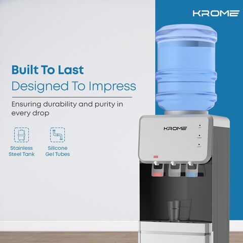 Krome Top Loading Water Dispenser Hot Cold And Normal Water Floor Standing Made With Stainless Steel Tank And Food Grade Silicone Gel Tube Child