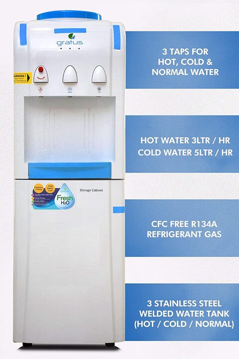 Gratus Hot Cold 3 Tap Water Dispenser With Storage Cabinet GWD503VIFCW White 1 Year Full 2 Year Compressor Warranty