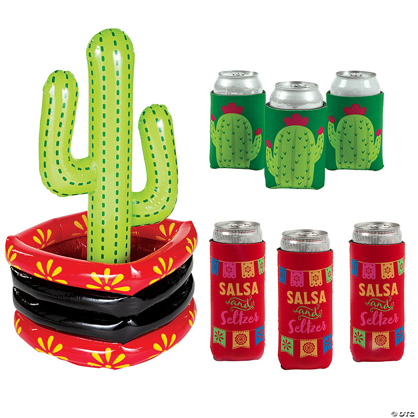 Inflatable Fiesta Cactus in Pool Cooler with Can Coolers for 48