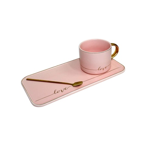 Modern Gold Plated Pink Coffee Cup With Saucer And Spoon