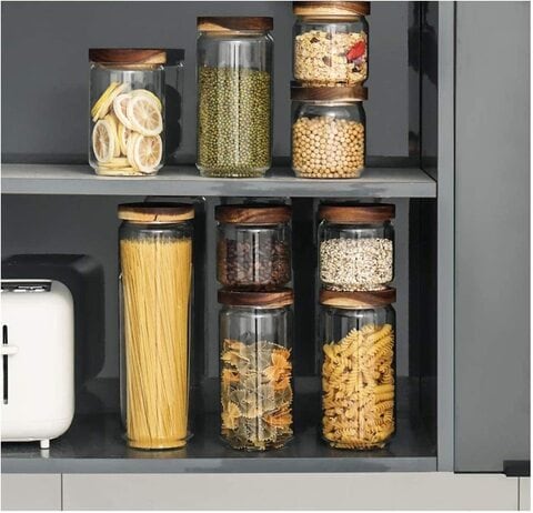 Acacia Food Glass Storage Jars