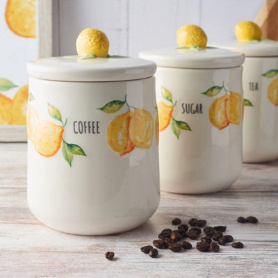 Bright coloured tea clearance coffee sugar canisters, Ceramic Amalfi Stoneware Kitchen Tea Storage Canister Jar Lid clearance