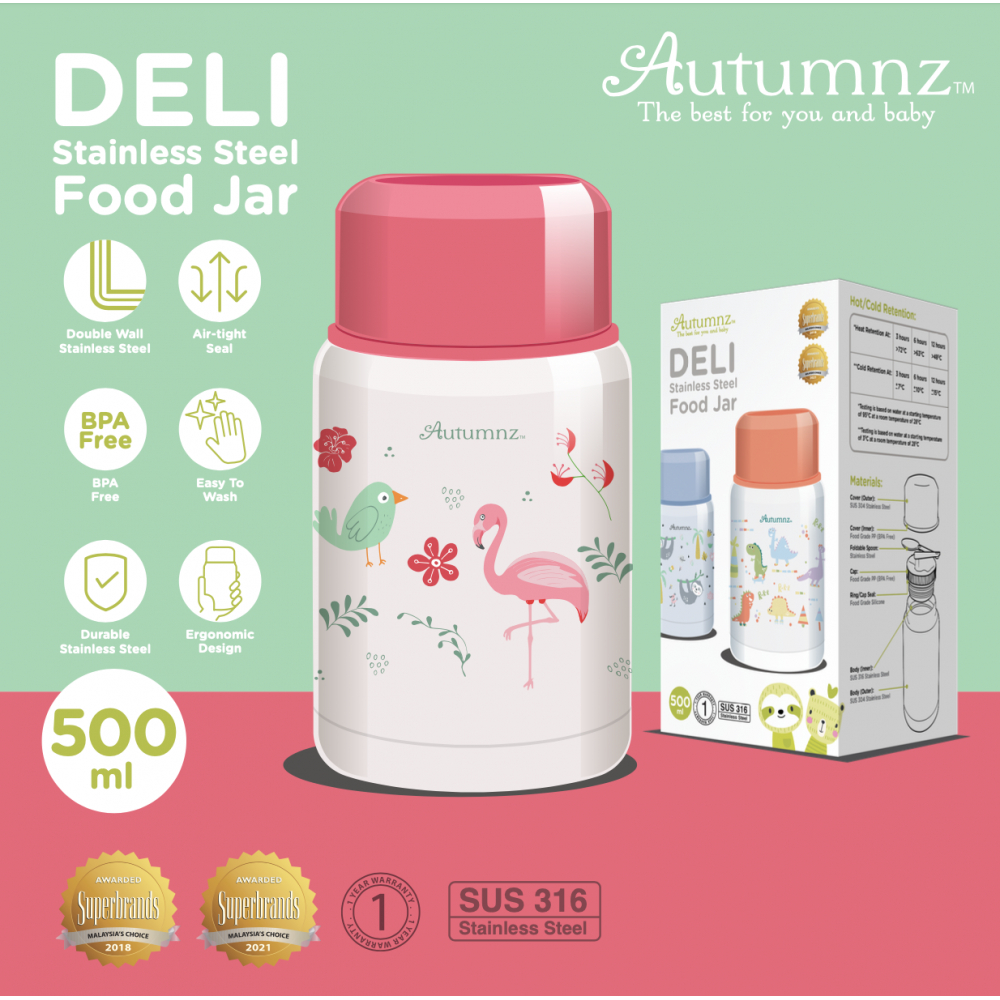Autumnz clearance food jar, Autumnz DELI Stainless Steel Vacuum Flask 500ml Flamingo clearance