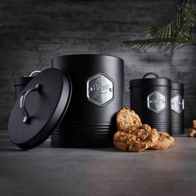 Black Tea Coffee Sugar Kitchen Storage Canister Sets shown with