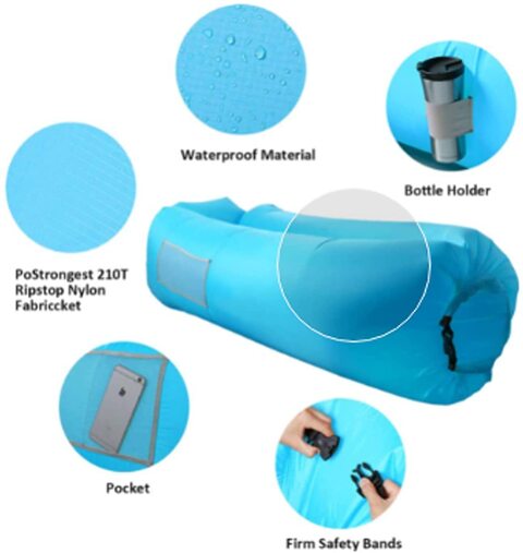 Bry Inflatable Lounger Air Chair Sofa Bed Sleeping Bag Couch for Beach Camping Lake Garden Blue 2