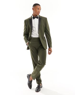 ASOS DESIGN slim tuxedo suit trousers in green ASOS