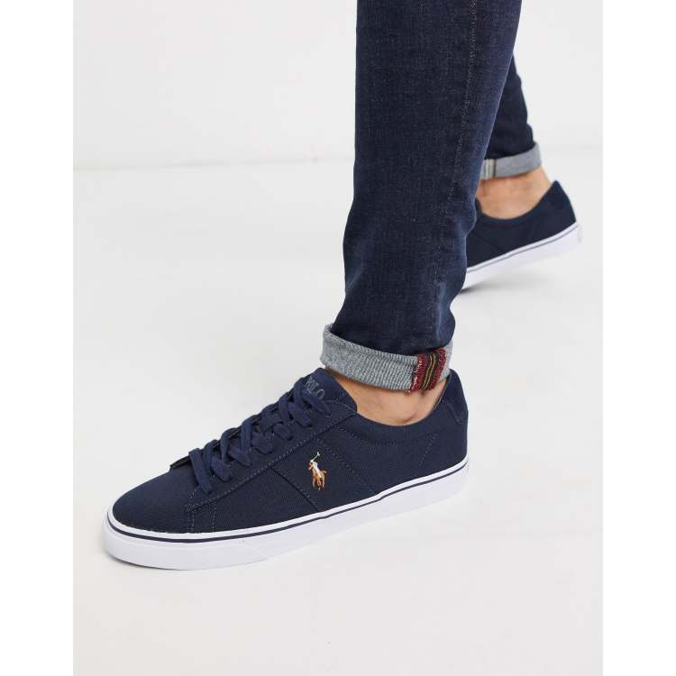 Polo Ralph Lauren sayer canvas trainer with multi polo player in navy