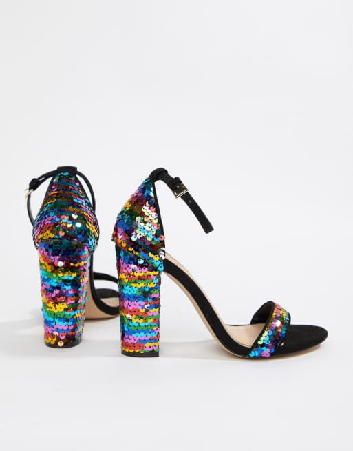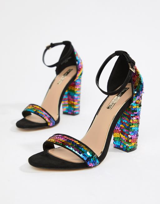 Multicolor sequin ankle strap chunky clearance heeled sandals