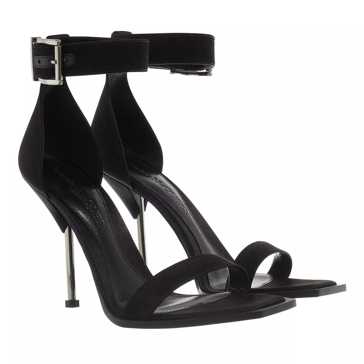 Alexander McQueen Silk Satin Sandal Black Silver High Heel