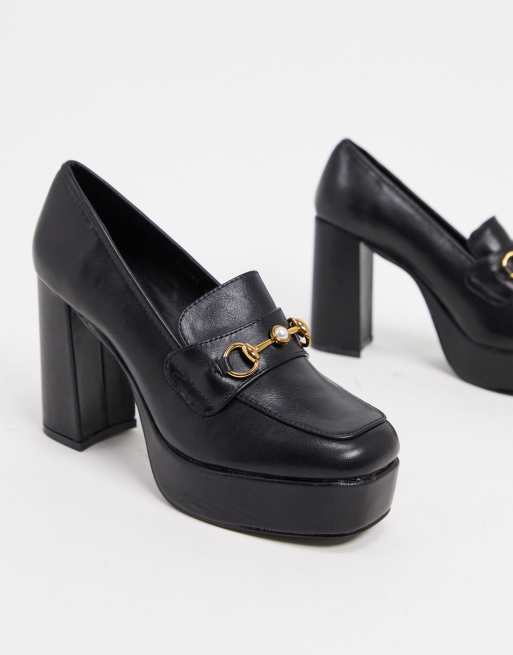 Womens Platform Heels Loafers Chunky High Heel Closed Toe Patent Leather Shoes Penny Loafer Business Dress Work Pumps