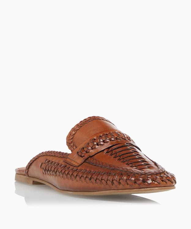 Tan clearance loafer mules, Gigys Tan Woven Backless Loafers Dune London clearance