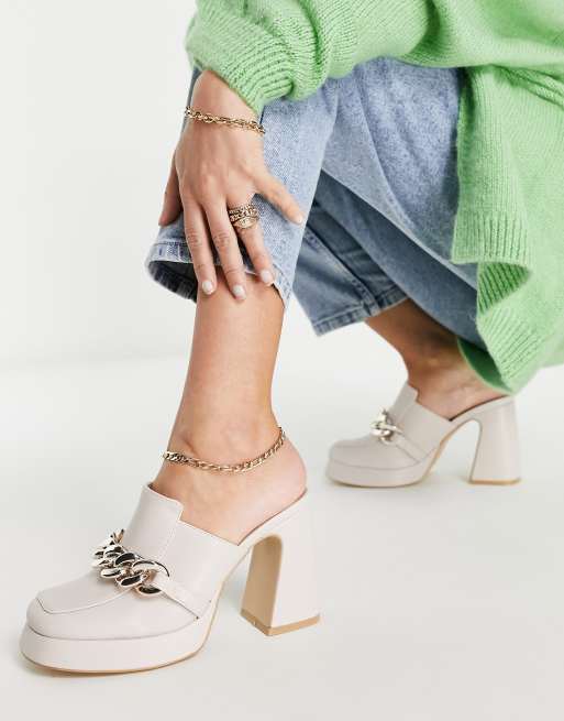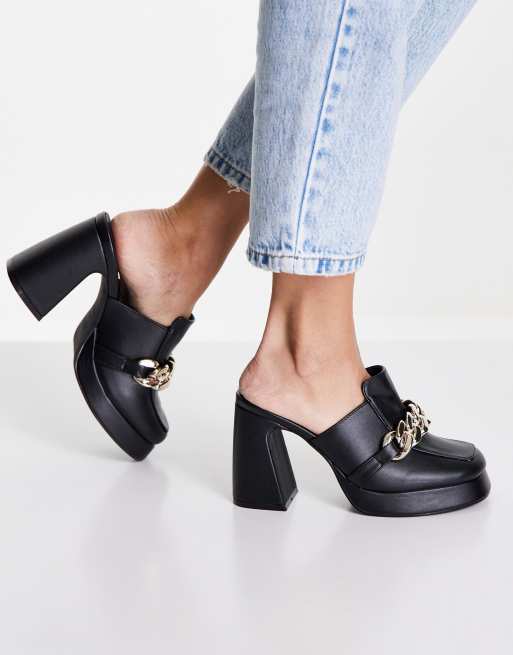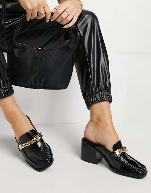 ASOS DESIGN Shaw chain loafer mid heeled mules in black ASOS