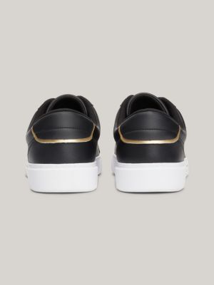 Metallic Trim Leather Court Trainers Black Tommy Hilfiger