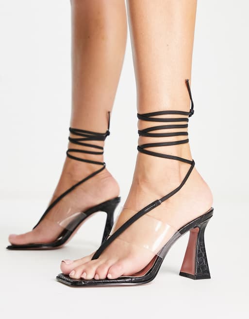 Call it Spring Esmeralda clear tie leg heeled sandals in black ASOS