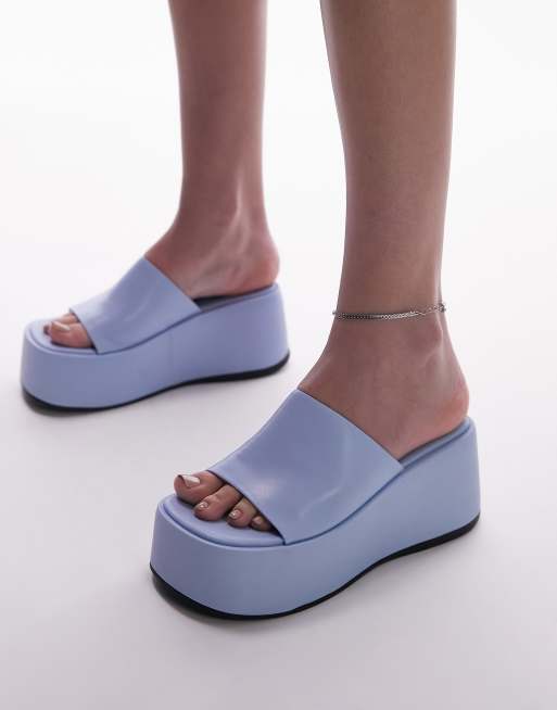 Topshop Wide Fit Gray flatform mule sandal in pale blue ASOS