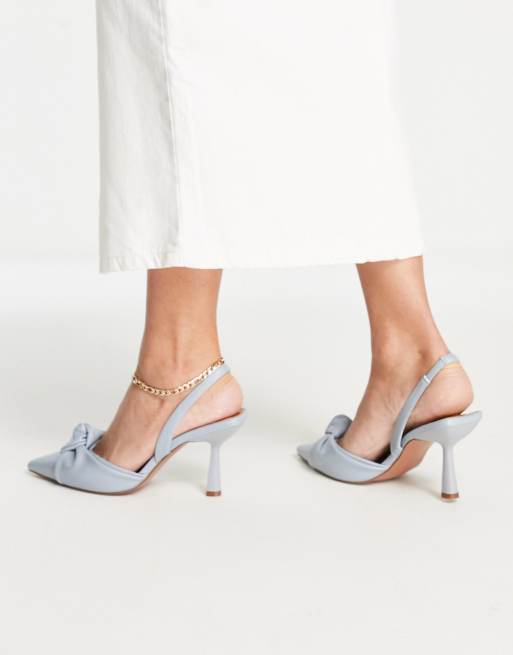 ASOS DESIGN Soraya knotted slingback mid heeled shoes in blue
