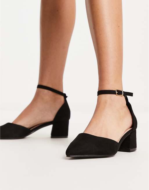 Truffle Collection Wide Fit mid block heel shoe in black ASOS