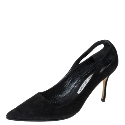 Manolo blahnik black clearance suede pumps, Pre owned Manolo Blahnik Black Suede Cut Out Detail Pointed Toe clearance